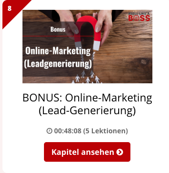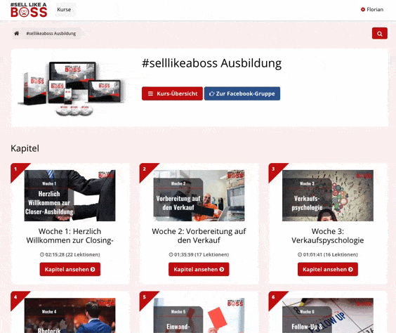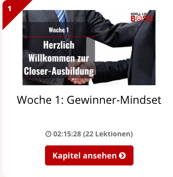Meine Kunden bekommen in über 100 Lektionen und über 12 Stunden hochwertigem Videomaterial alles vermittelt, was sie dazu bringt hochpreisige Angebot authentisch und sauber abzuschließen.
